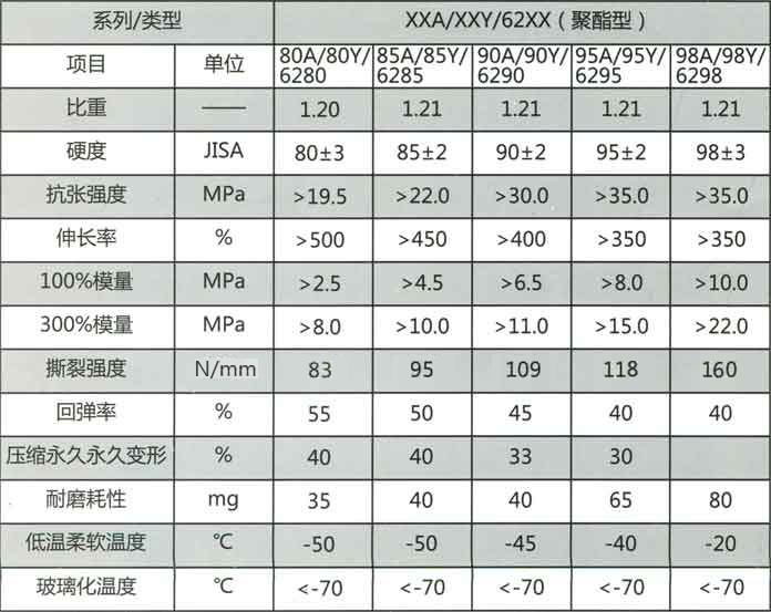 產(chǎn)品物性指標(biāo)(XX代表硬度)